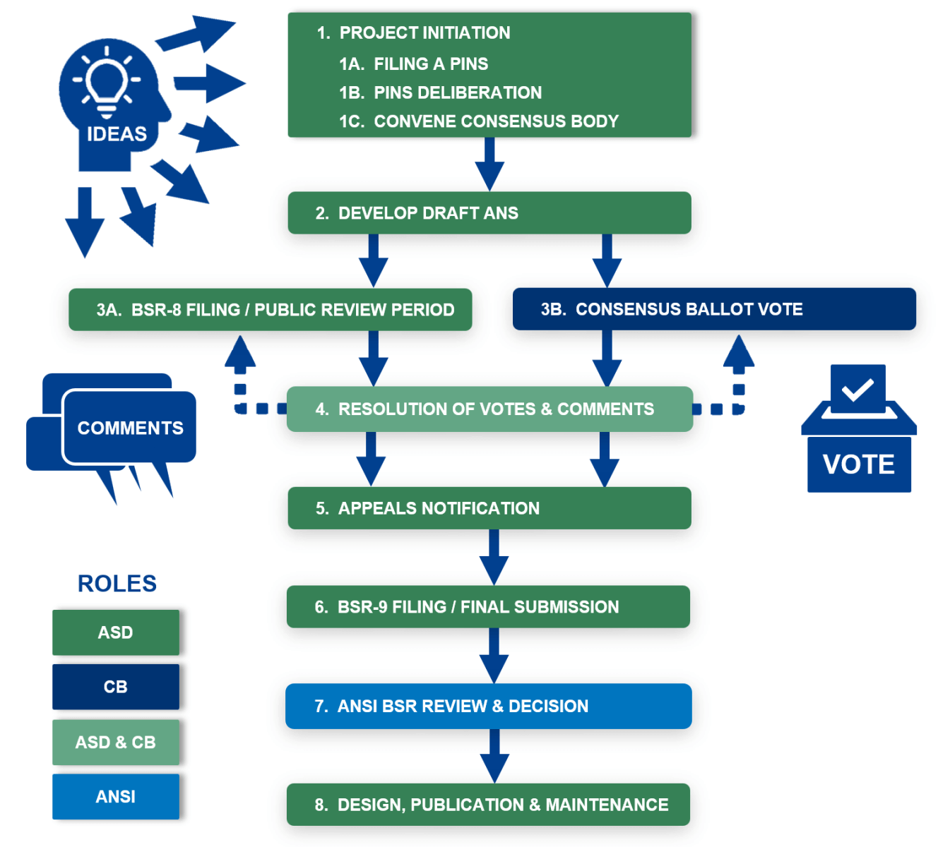 | 7. ANSI Decision | Monitor Standards Action |